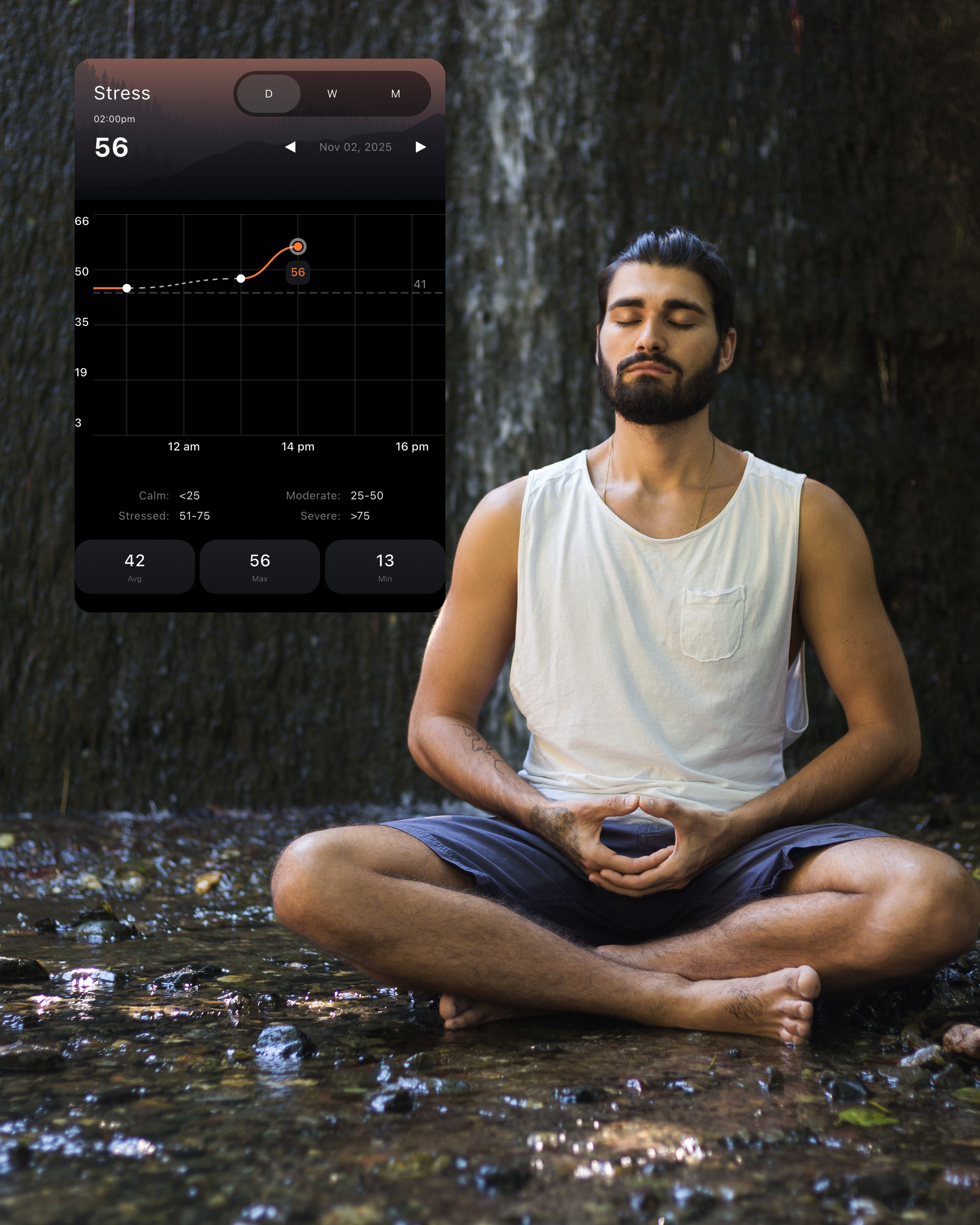 Heart rate, HRV, body temperature, sleep, stress, respiration, physical activity, calories, steps, menstrual tracking, and more.