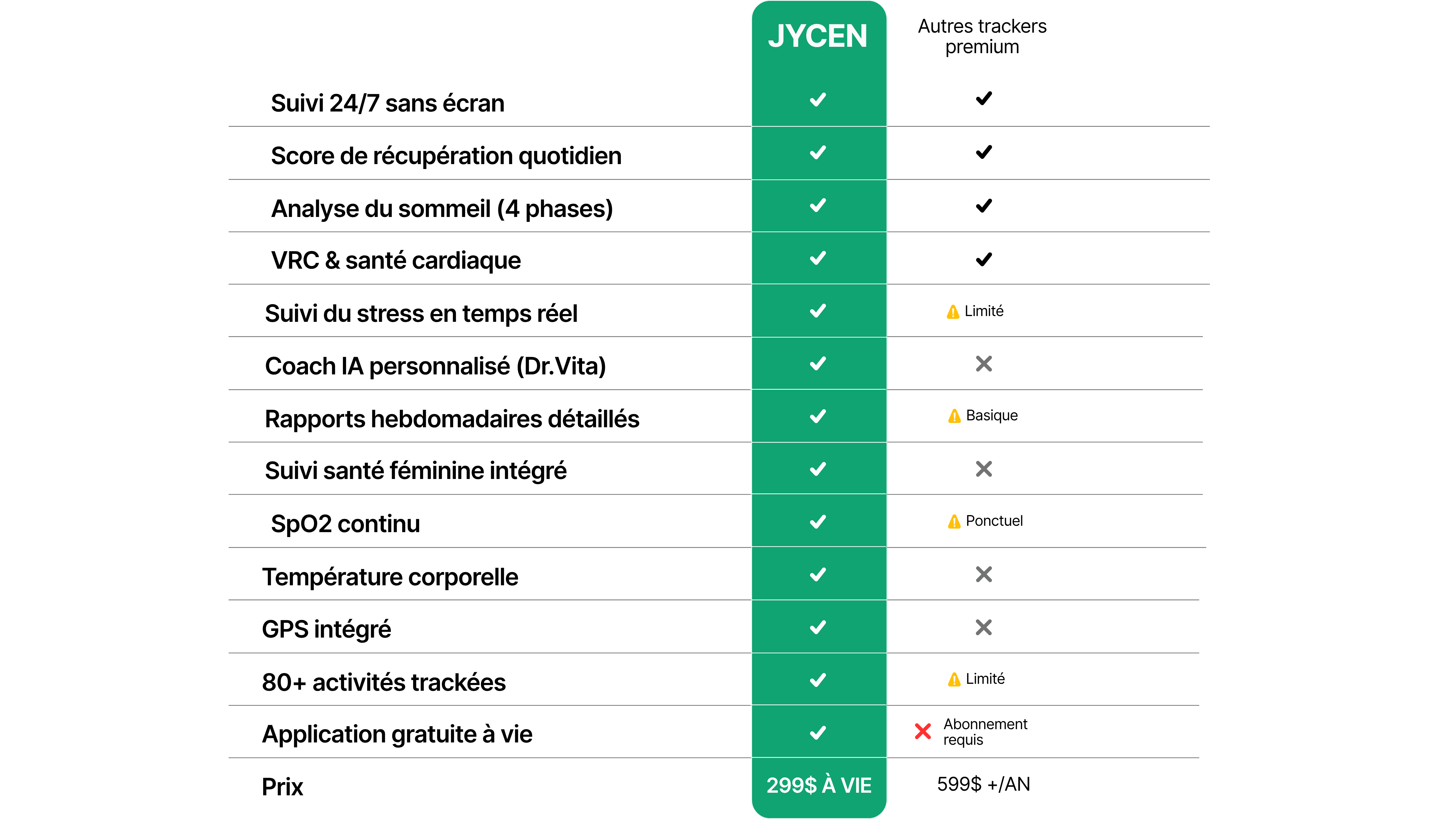 Without clear data, it's difficult to progress without burning yourself out. Jycen helps you make the right decisions every day, thanks to a precise wearable and a smart app.